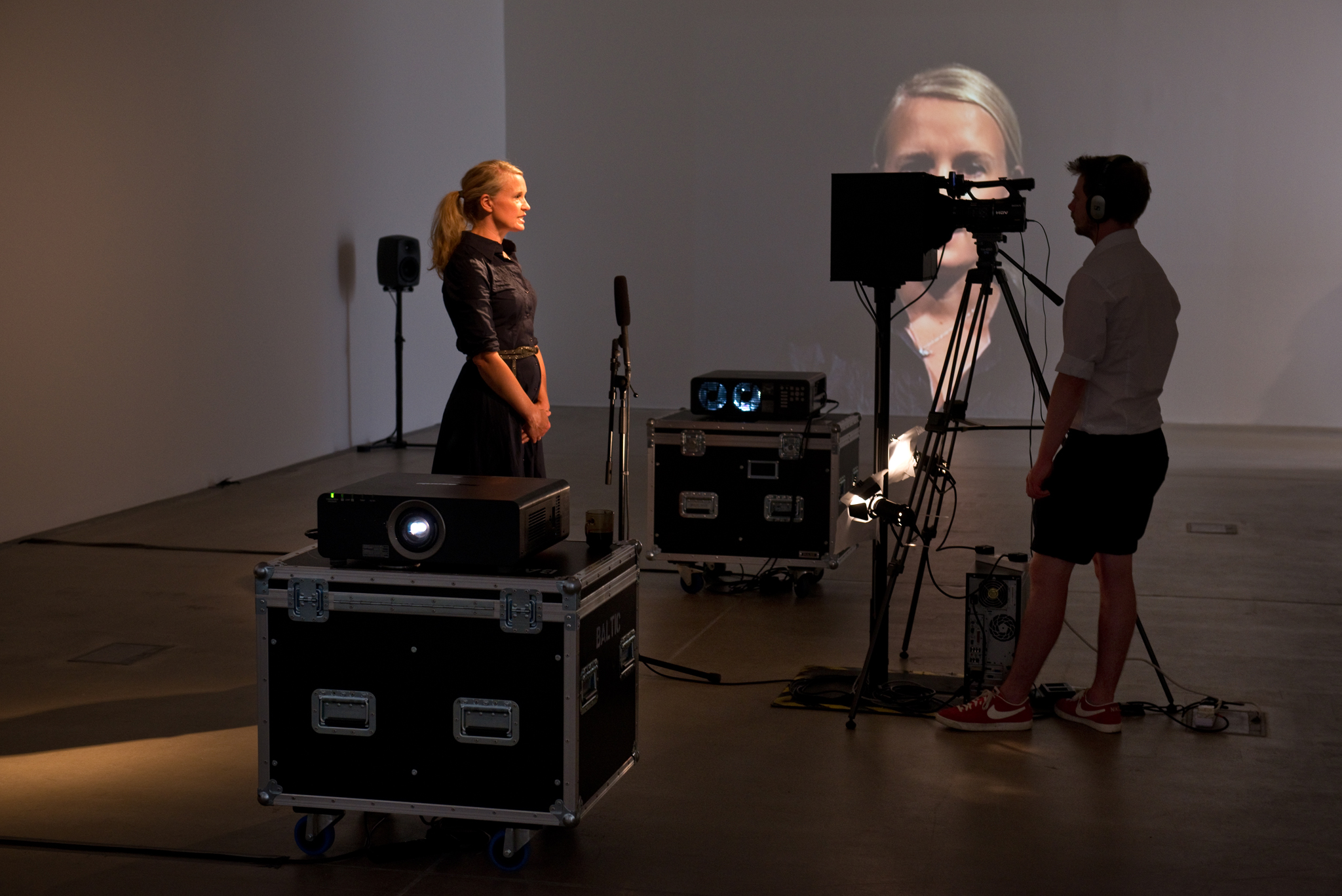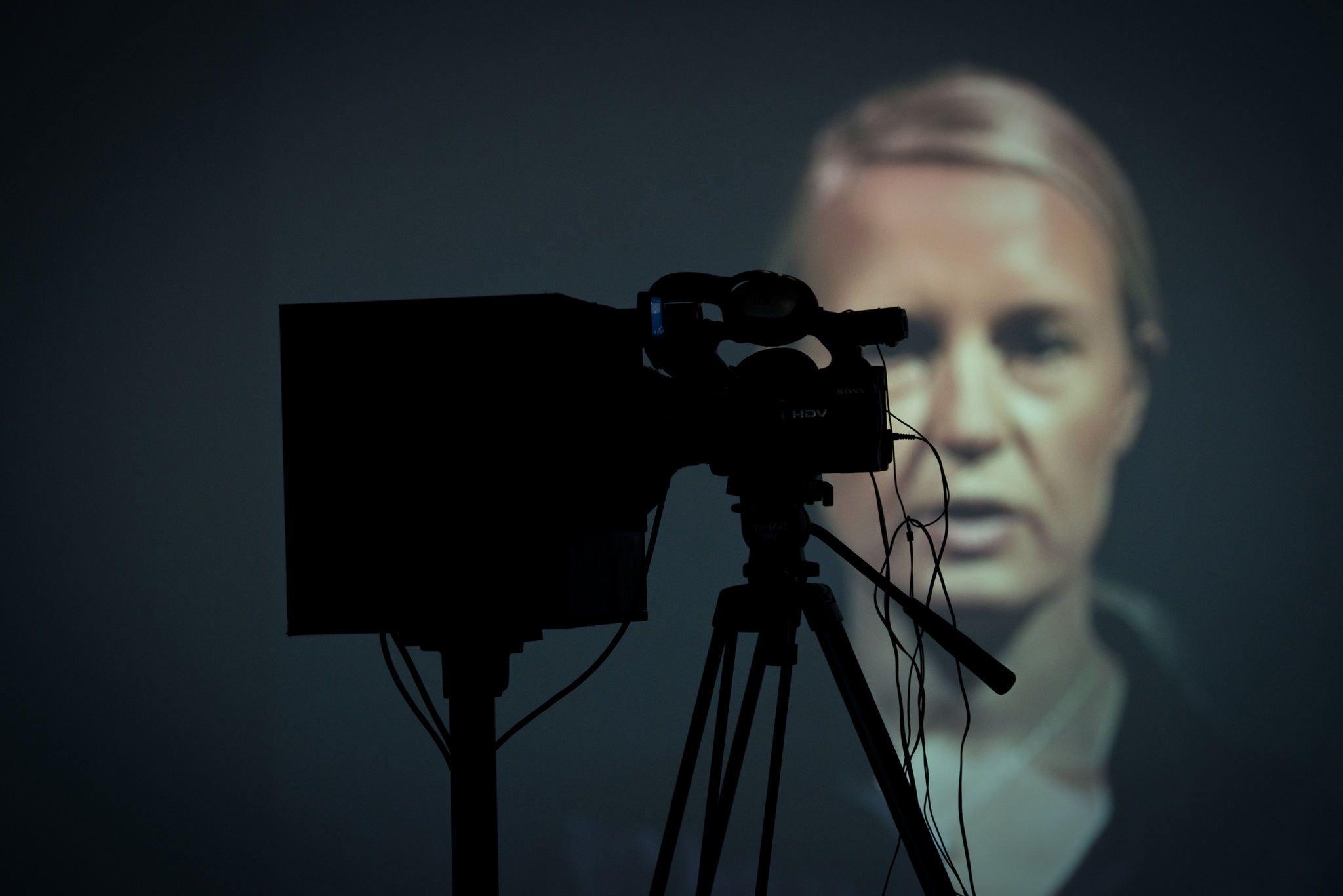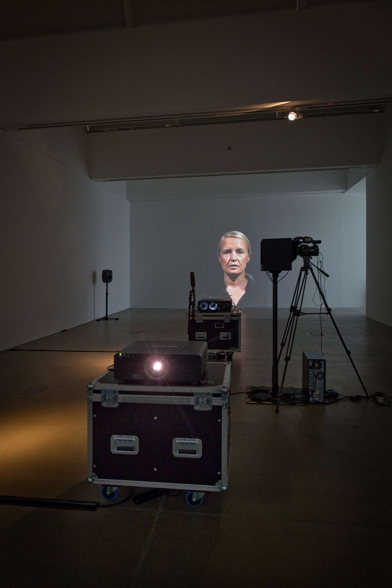 Each day there will be a performance in which an actor enters the gallery, stands on a mark in front of a camera, and delivers the list with the aid of a teleprompter. Once the actor is finished, the footage will be captured and projected back into the space, representing the list as an endless audio-visual loop that surrounds the scrolling teleprompter and the actor’s mark.