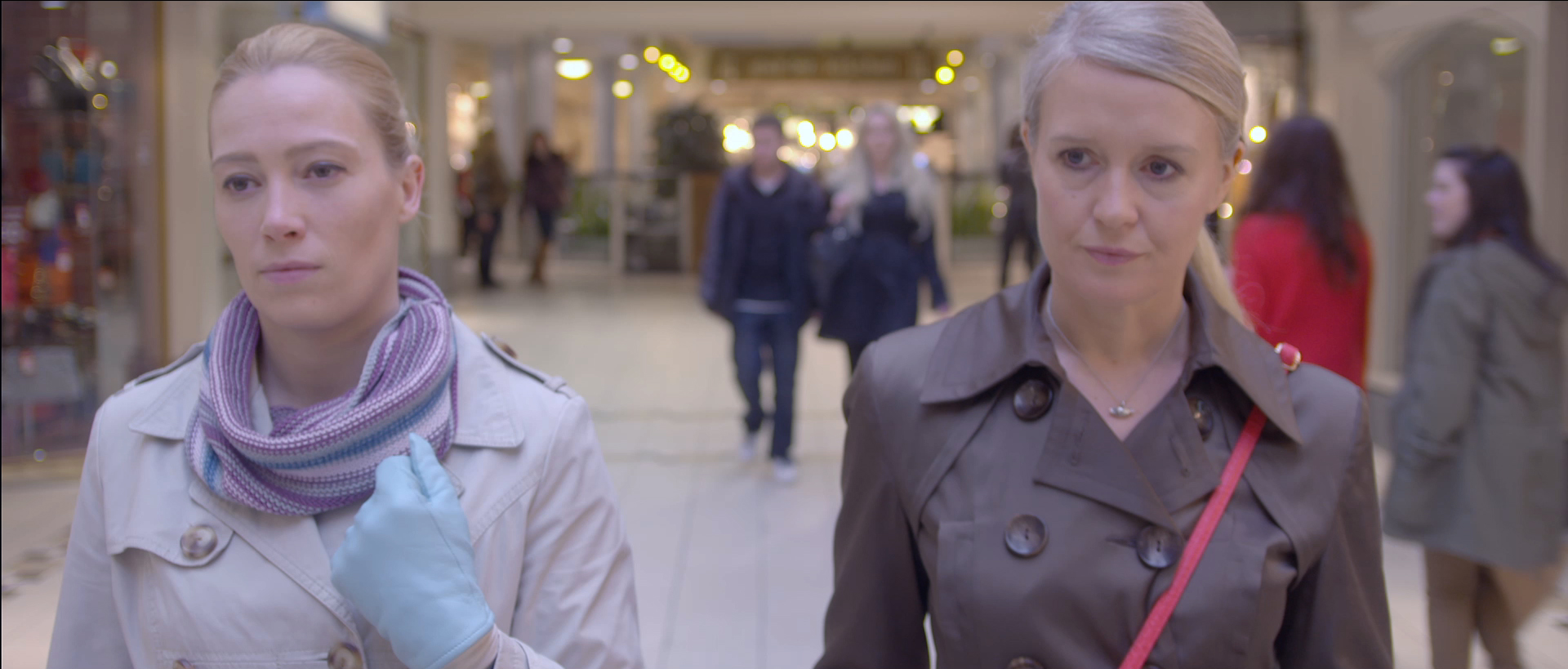 SYSTEM (2014) is a short film set inside a shopping centre. The film follows the interactions between two sisters; one anxious about her personal safety, the other concerned with the invisible threat of infection. The sterile atmosphere of the environment quickly becomes menacing as the women’s personal safety systems begin to fail.